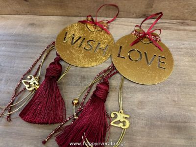Μεταλλικό γούρι Wish ή Love με φούντα μπορντώ
