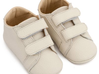 Μπεζ Δερμάτινο Sneakers Διπλή Μπαρέτα Χρατς σε Μπεζ Χρώμα