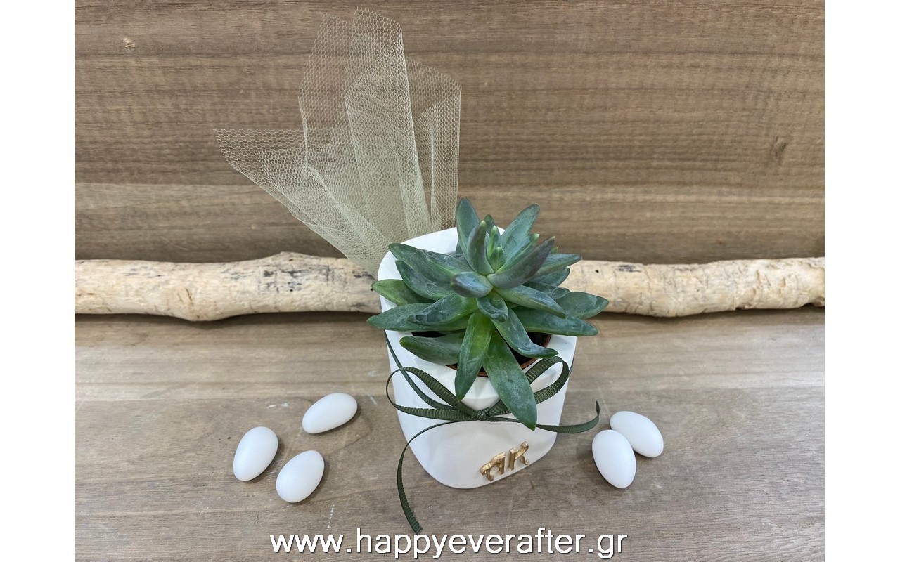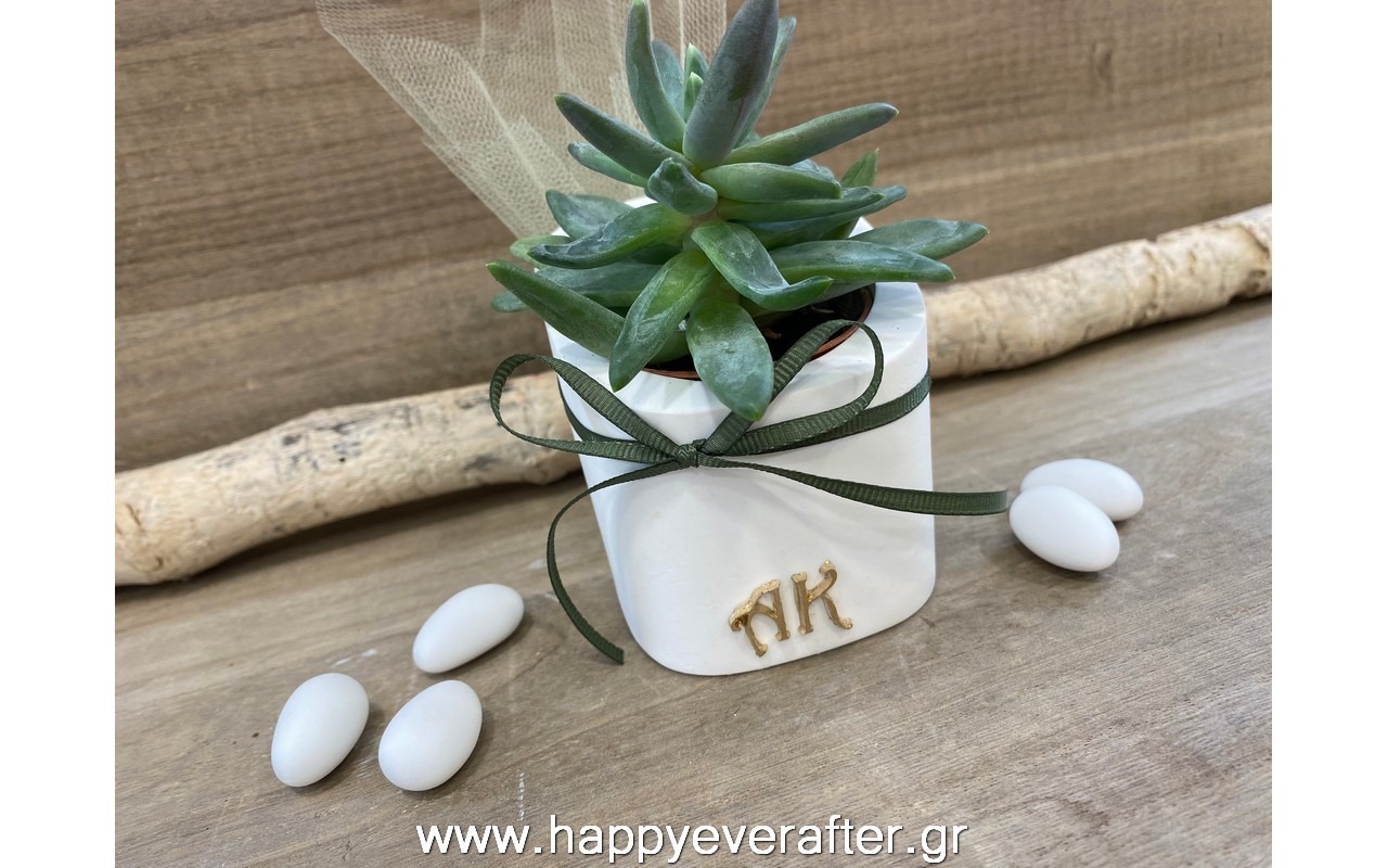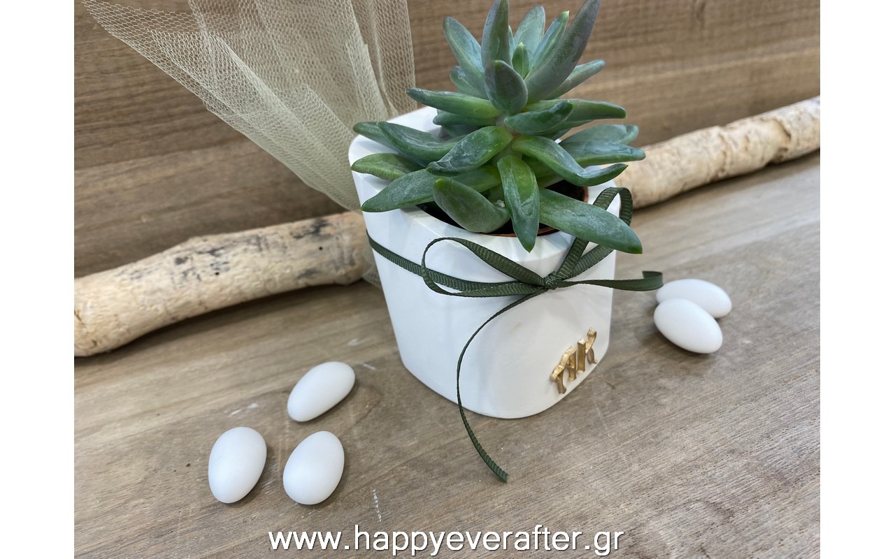 Μπομπονιέρα κασπώ με ιδιαίτερο σχήμα slide από χυτό υλικό με υφή πορσελάνης. Διάσταση: βάση 6,3*6,3cm, ύψος 8cm. Διαθέσιμη σε πολλά παλ χρώματα, με εφέ μαρμάρου, με φύλλα χρυσού και χρυσή βαφή! Επιλέξτε το χρώμα του κασπώ, την κορδέλα και το τούλι. Συμπεριλαμβάνονται 3 κλασικά κουφέτα αμυγδάλου (βανίλια, φράουλα, καραμέλα) ή crispies Χατζηγιαννάκη! Εφόσον το επιθυμείτε μπορεί να προστεθεί παχύφυτο με επιβάρυνση 1,60€ ανά τεμάχιο και μονογράμματα με επιβάρυνση 0,80€.