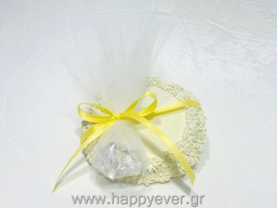Μπομπονιέρα γάμου κεραμικό σουβέρ με ρητίνη και φύλλα χρυσού! Επιλέξτε το θέμα εκτύπωσης από τη συλλογή μας ή επιλέξτε δικό σας θέμα με επιπλέον χρέωση δημιουργίας νέας μακέτας. Επιλέξτε το χρώμα στην κορδέλα και το τούλι.