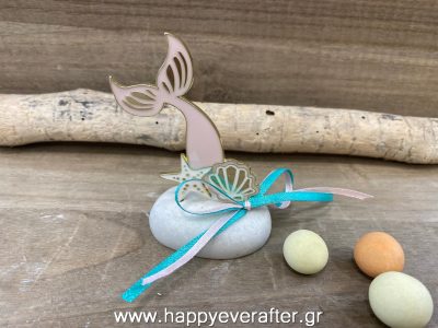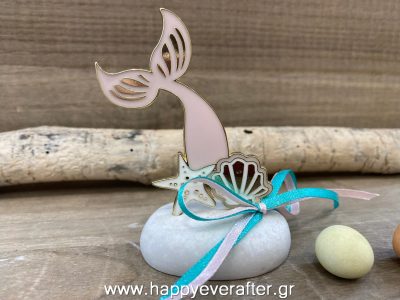 Μπομπονιέρα βάπτισης βότσαλο με μεταλλική ουρά γοργόνας ΒΒ0003