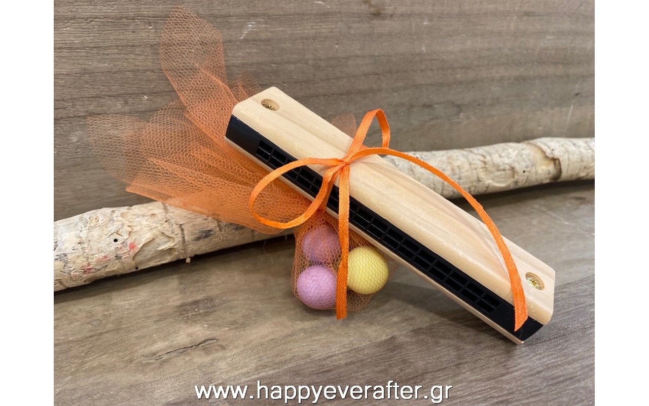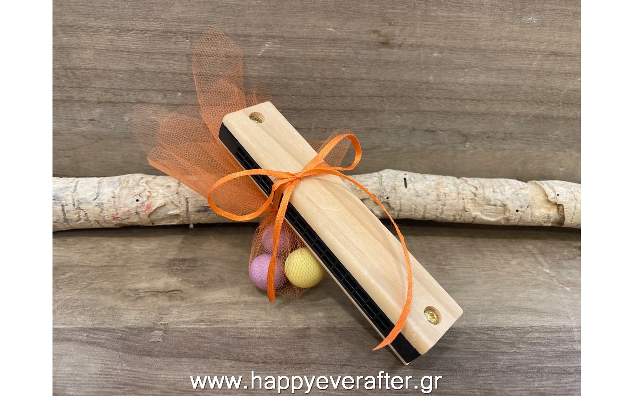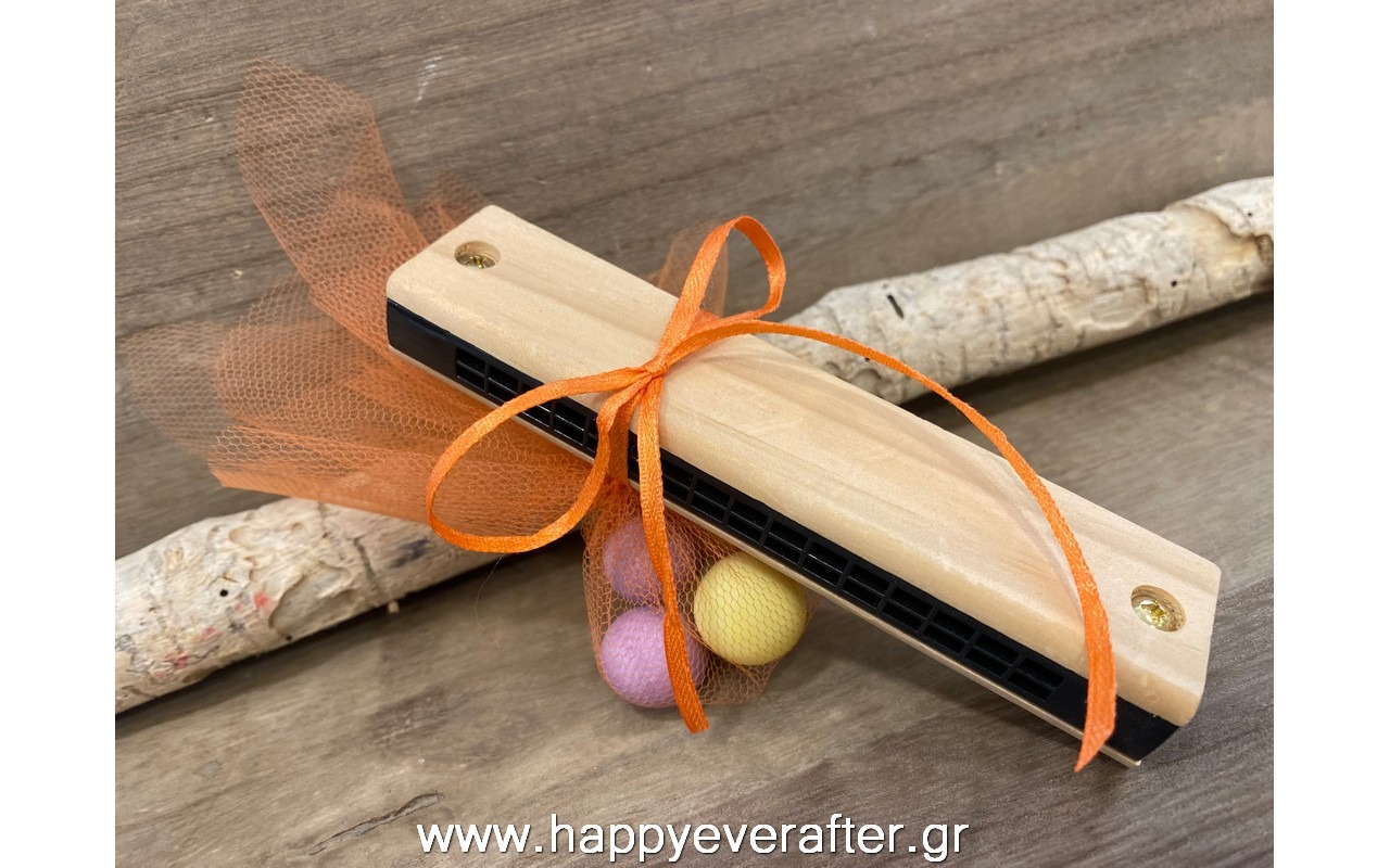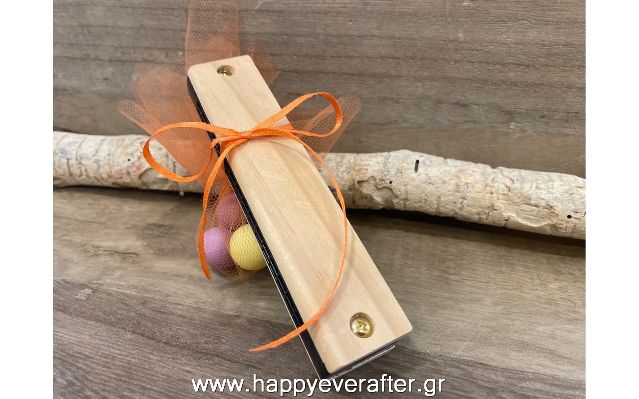 Μπομπονιέρα βάπτισης ξύλινη φυσαρμόνικα ΒΞ0026
