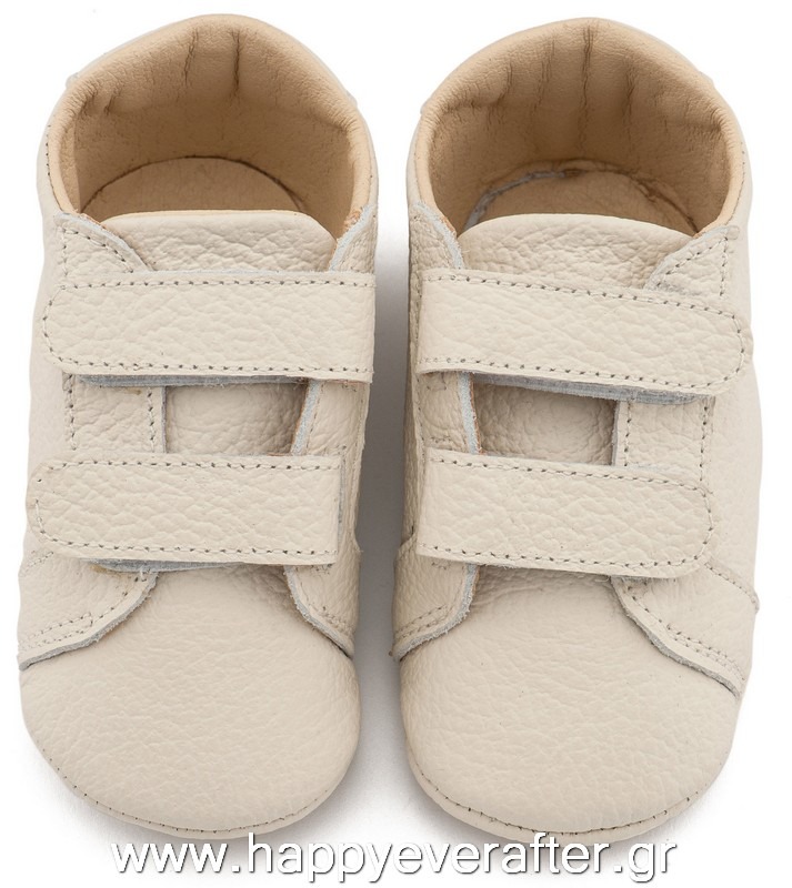 Εκρού Δερμάτινο Sneaker Διπλή Μπαρέτα Χρατς σε Εκρού Χρώμα