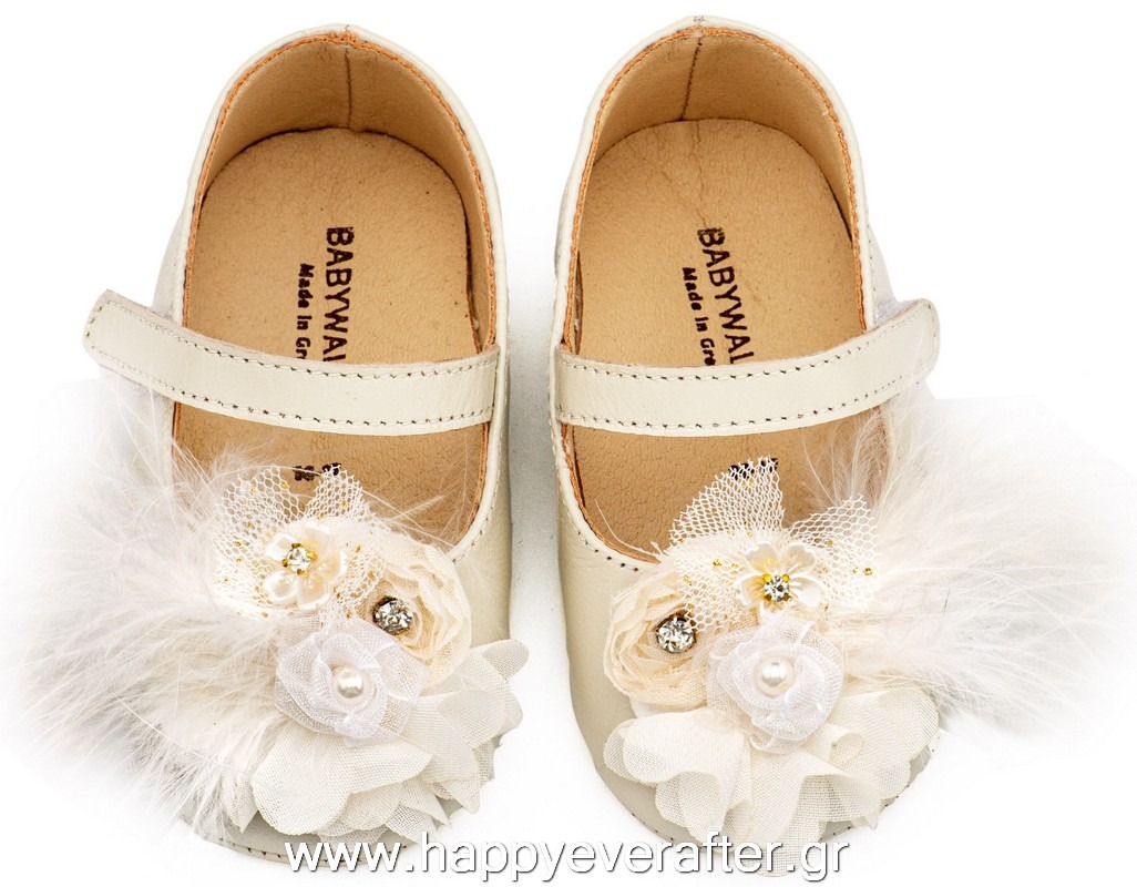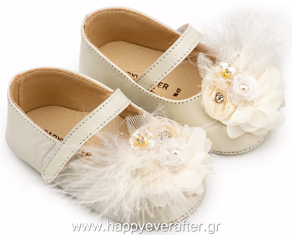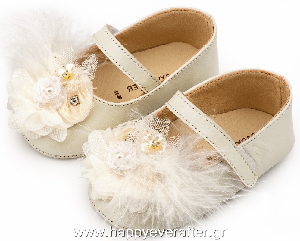 Εκρού Γοβάκι Μονή Μπαρέτα Χειροποίητο Λουλούδι με Πούπουλα PRI2658