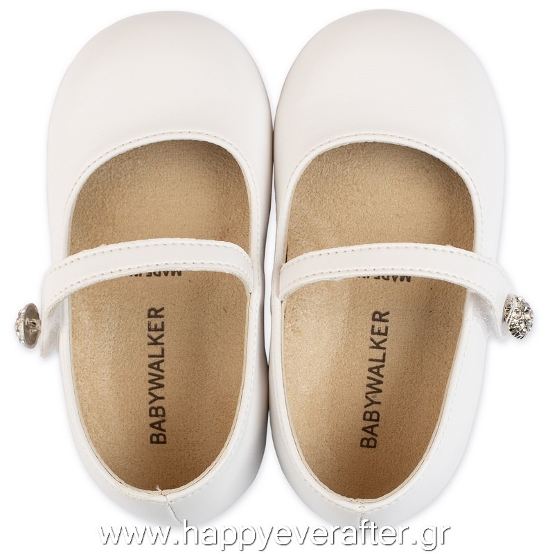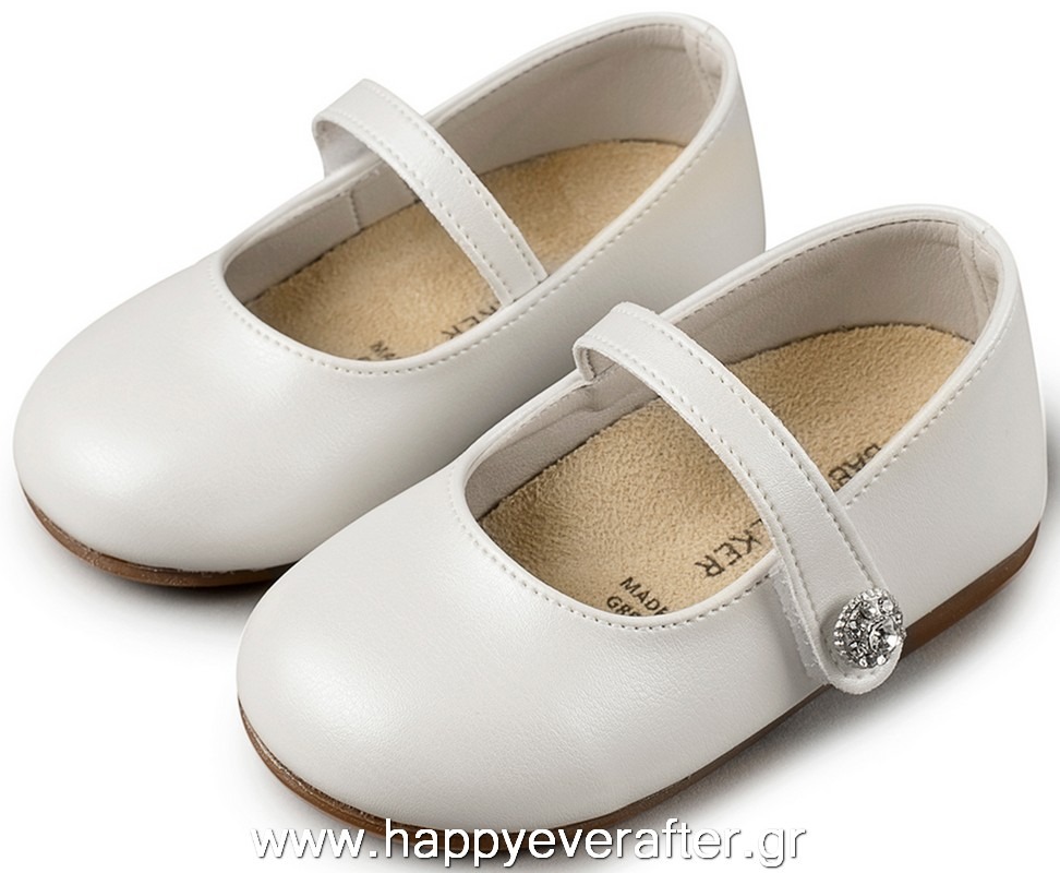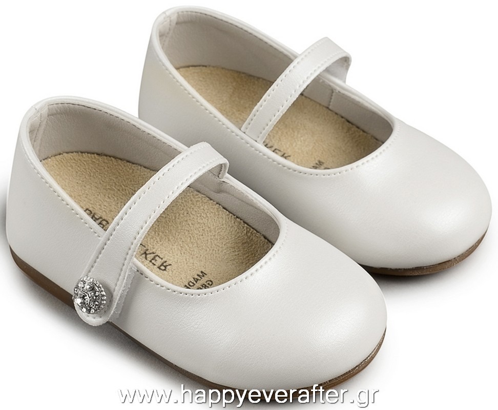 Λευκό Δερμάτινο Γοβάκι Μονή Μπαρέτα με Στρασένιο Κουμπάκι από Συνθετικό Δέρμα σε Λευκό χρώμα