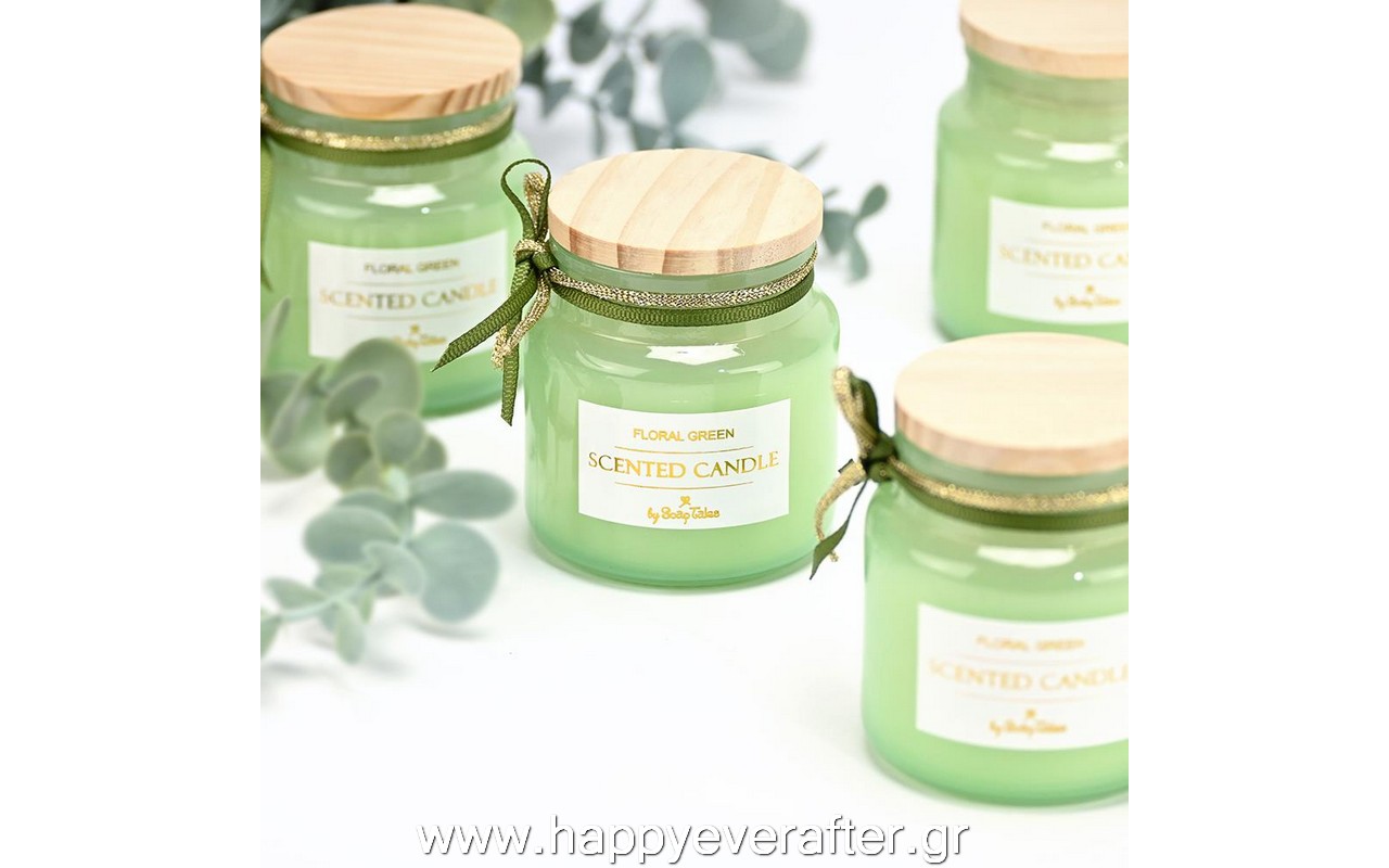 Κερί πράσινο με ξύλινο καπάκι με άρωμα floral green 6×5.2x 7εκ 75gr