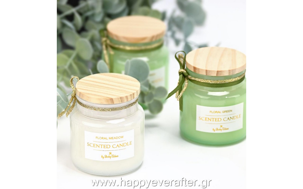 Κερί πράσινο floral meadow με ξύλινο καπάκι ST00820
