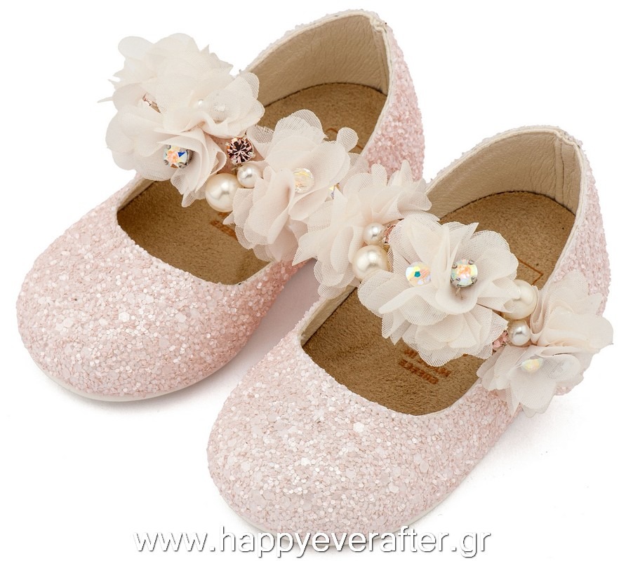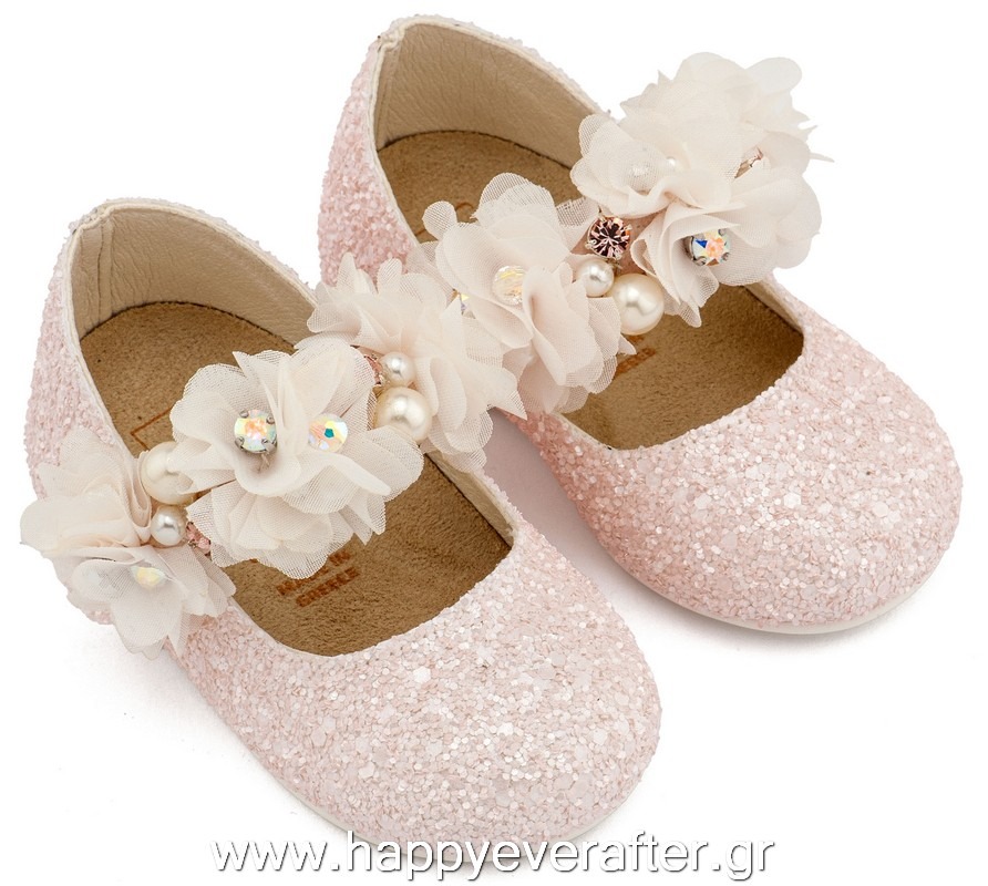 Εκρού Ροζ Γοβάκι Μονή Μπαρέτα με Λουλούδι PRI2640