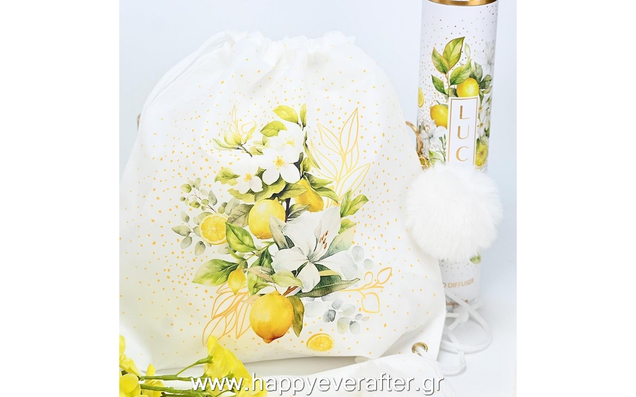 Σακίδιο πλάτης λεμόνια με λουλούδια μαζί με μπρελόκ ST00896