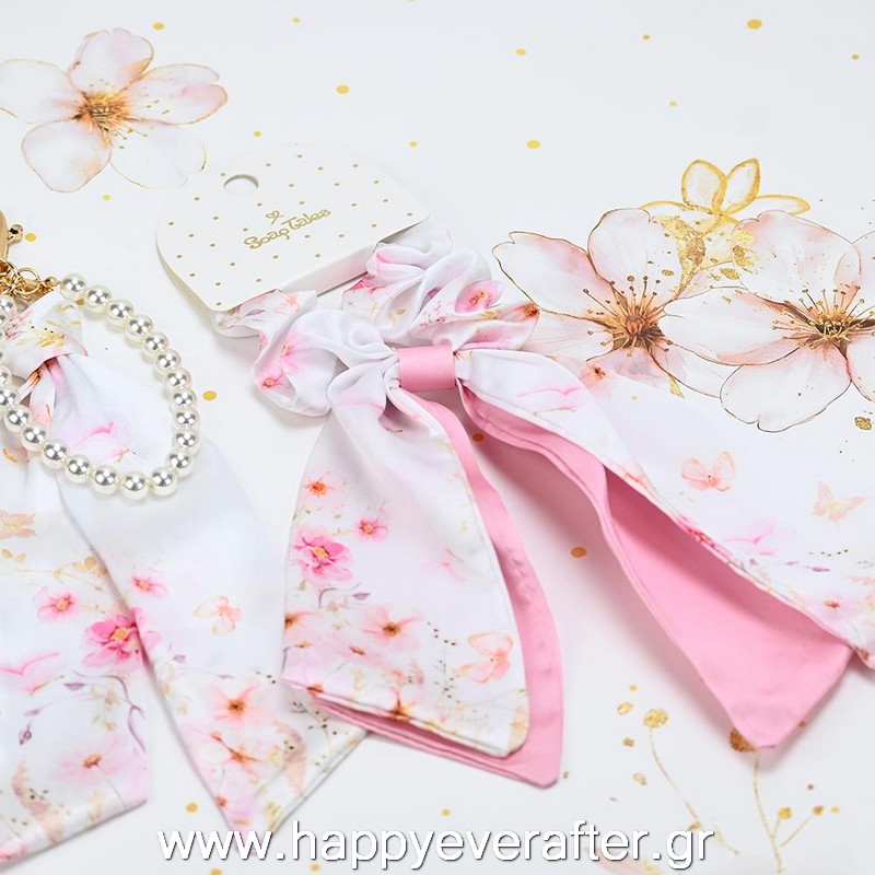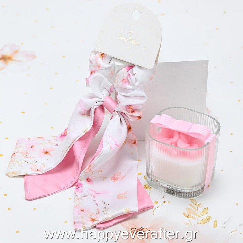 Το scrunchie με μαντήλι από τη σειρά Pink Blossom συνδυάζει φινέτσα και θηλυκότητα, χαρίζοντας κομψότητα σε κάθε σας εμφάνιση. Με σχέδιο λουλουδιών σε ροζ αποχρώσεις, αγκαλιάζει απαλά τα μαλλιά χωρίς να τα φθείρει, ενώ το ανάλαφρο μαντιλάκι δίνει κίνηση και στυλ. Φοριέται στα μαλλιά για elegant χτενίσματα, στον καρπό σαν βραχιολάκι ή ακόμη στην τσάντα σαν αξεσουάρ. Μια exclusive πρόταση της SoapTales για μπομπονιέρα γάμου ή βάπτισης.